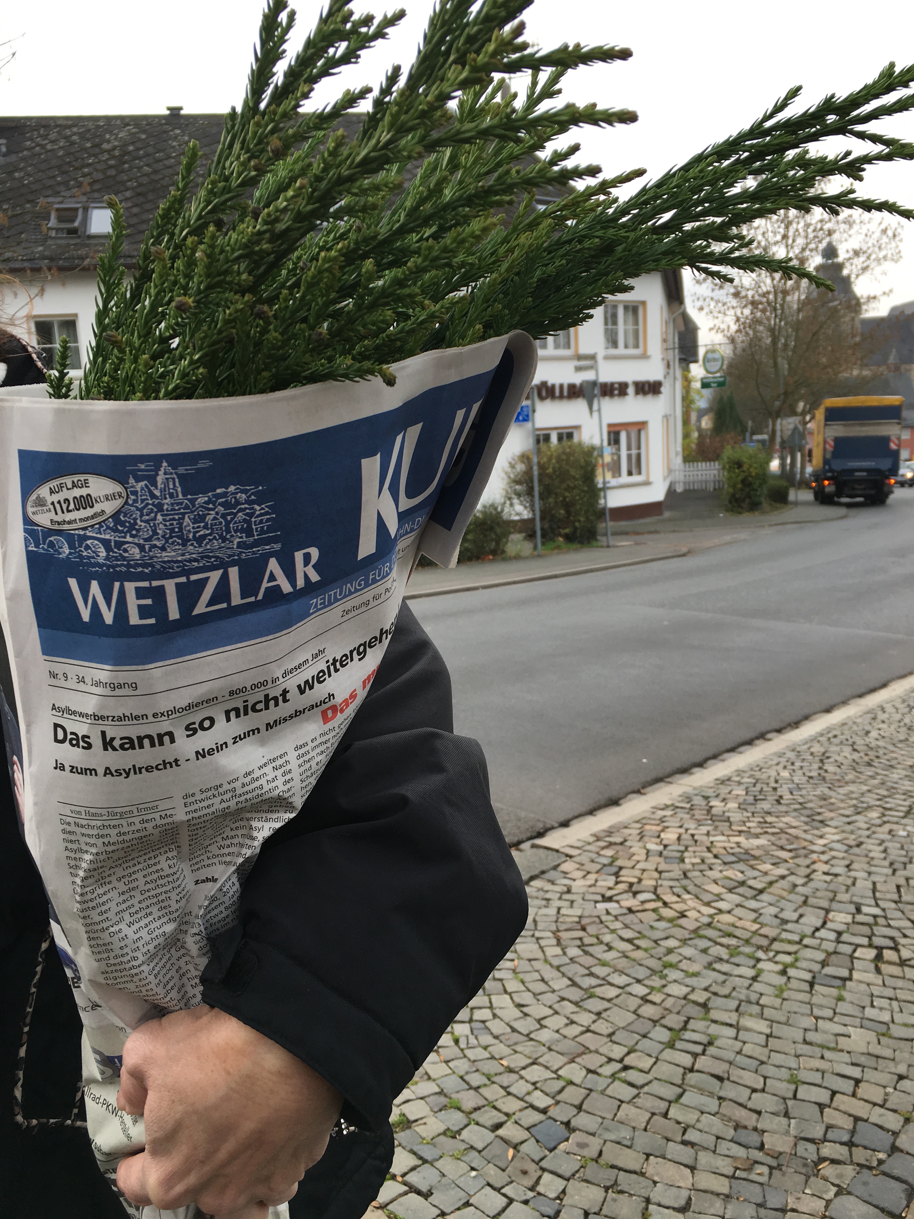 Anschließend befreunde man sich mit vielen heimischen Rechtsanwaltskanzleien und gebe der Polizei regelmäßig Geschenke. Dann fordere man die Abschiebung aller kriminellen Ausländer und das Zurückschicken der Bootsflüchtlinge. Das Ganze vermische man mit etwas Islamophobie, Homophobie, Sozialneid und Konkurrenzangst. Nebenbei verstreue man wieder etwas Gutheit, in dem man auf Wohnungssuche für eine alleinerziehende Akademikerin geht. Zwischendurch setze man sich auf Stadion- , Kneipen und Kirchenbänke. Nun platziere man etwas Autohauswerbung mit einer Brise Gesundheitsindustrie. Vergesse aber nicht den Kulturstammtischkalender, Gimmlers Seniorenreisen und einen Schuss Fremdenangst aus der Feder des alten Freundes Ulfkotte. Am Ende streue man das Ganze hemmungslos mit ausländerfeindlichen und chauvinistischen Leserbriefen und verschönere das Ganze mit blau-alternativen Positionen. Ab und zu gebe man noch etwas rechten Duft der „Jungen Freiheit“ als Beilage dazu. Verpackt werde das Ganze mit dem Papier des Lahn-Dill-Anzeigers.
