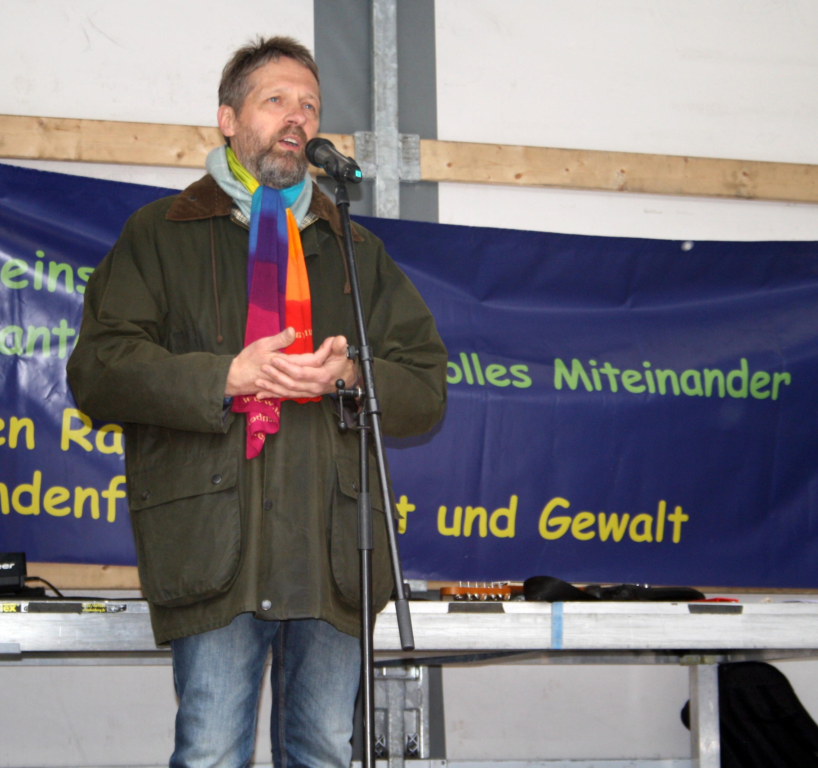Im Oktober vergangenen Jahres hatten die Domglocken zum Abbruch der Kundgebung der Extremisten geführt. Dazu kam es jedoch diesmal nicht, da der Domplatz aus den gemachten Erfahrungen heraus von den Rechten gemieden wurde. Die Rechtsaktivisten und ihr Beschallungswagen konnten sich aufgrund der Blockade der Gegendemonstranten nur im engen Rahmen der Bahnhofstraße bewegen. Hierbei setzten die Gegendemonstranten ihren eigenen Beschallungswagen ein, sodass die Redebeiträge der Rechtsextremen kaum zu verstehen waren. Hinzu kamen das Pfeifen der Gegendemonstranten und Hupen von Motorrädern. „Erinnerung ist der Schlüssel zur Zukunft“, machte Wolfgang Grieb, Pfarrer der Evangelischen Kirchengemeinde Hermannstein, deutlich. Grieb, der auch für die Gesellschaft für Christlich-Jüdische Zusammenarbeit Gießen-Wetzlar und den Christlich-Islamischen Arbeitskreis sprach, verwies unter anderem auf das jährliche Gedenken zur Pogromnacht, erzählte von einem Unterstützungsprojekt für eriträische Flüchtlingskinder in Tel Aviv und warb damit für „Buntheit“ in Wetzlar, Hermannstein und Israel. „Was diese ewig Gestrigen als ihr Zukunftsmodell ausgegeben haben, ist ein Irrweg, der in den Abgrund führt“, legte Oberbürgermeister Manfred Wagner dar. „Wir in Wetzlar stehen für Vielfalt statt für braune Einfalt“, verwies das Stadtoberhaupt auf das friedliche Zusammenleben von Menschen aus 115 Nationen. Landrat Wolfgang Schuster, der in seinem Beitrag Pfarrer Martin Niemöller und Pfarrer Martin Luther King zitierte, ergänzte: „Wir wollen dieser Brut nicht ein zweites Mal diese Demokratie zur Verfügung stellen!“