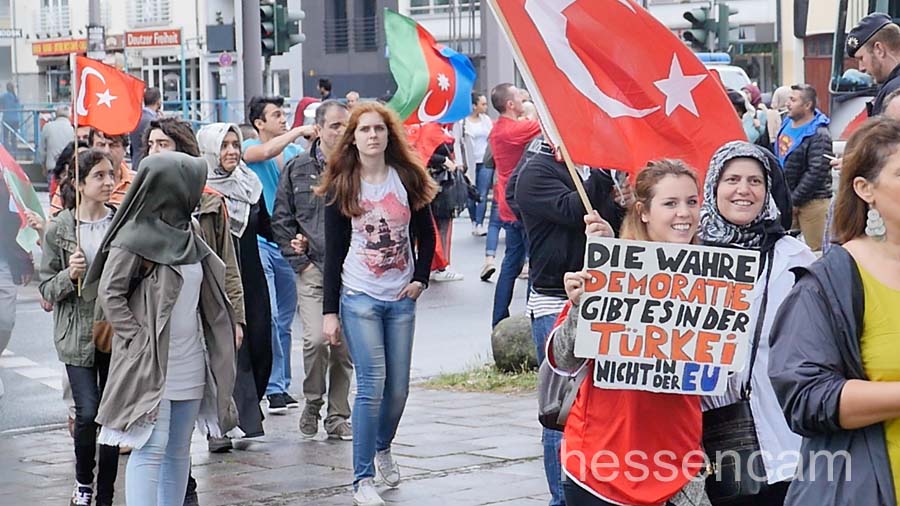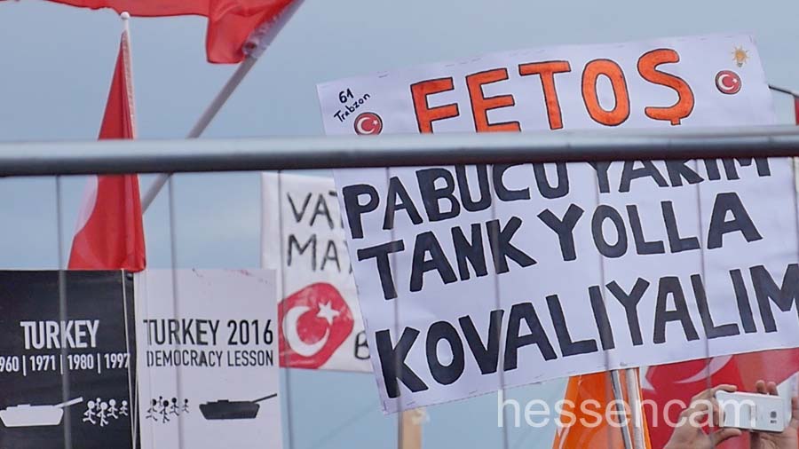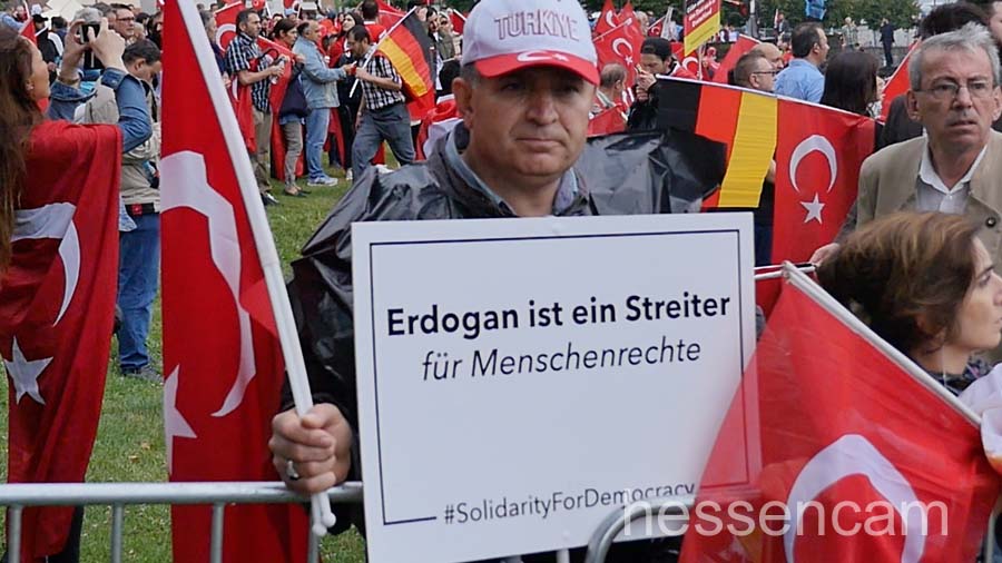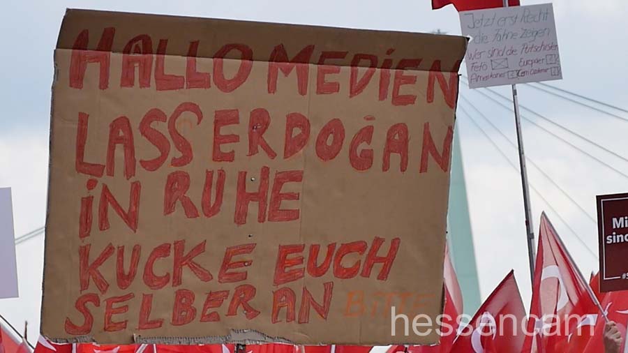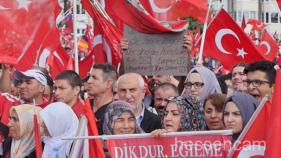 Die Mehrzahl der Demoteilnehmer*innen waren eindeutig Erdogan-Anhänger*innen. Obwohl die Veranstalter betonten, dass die Demonstrant*innen bunt gemischt seien, entdeckte man kaum Deutsche ohne Migrationshintergrund oder Menschen aus den alevitischen, kurdischen oder politisch linken Kreisen. Zwar wurden deutsche Fahnen verteilt und die deutsche Hymne abgespielt, jedoch war Deutschland, Europa und die USA eher Zielscheibe für polemische Angriffe.  Die „zweite Heimat“ wurde  kritisch als Verbündete des Terrors und des Militärputsches angesehen.