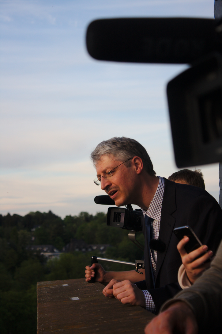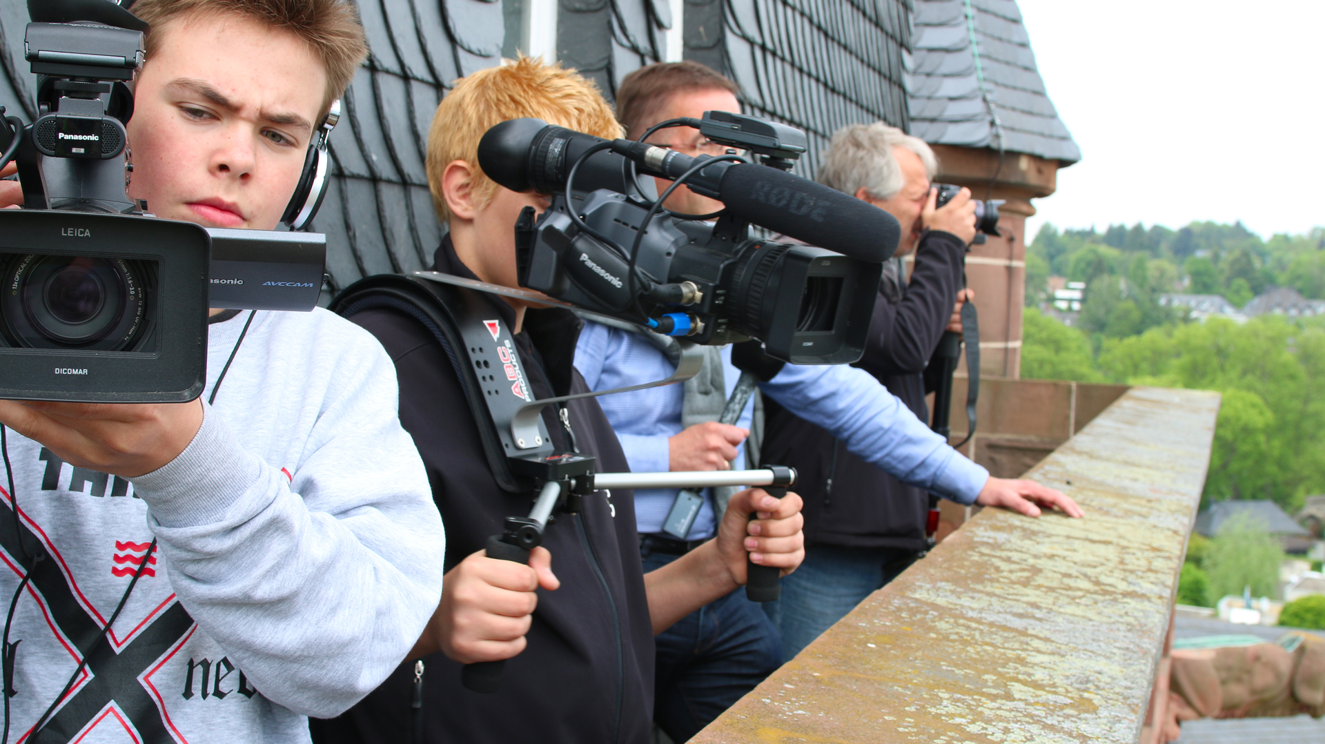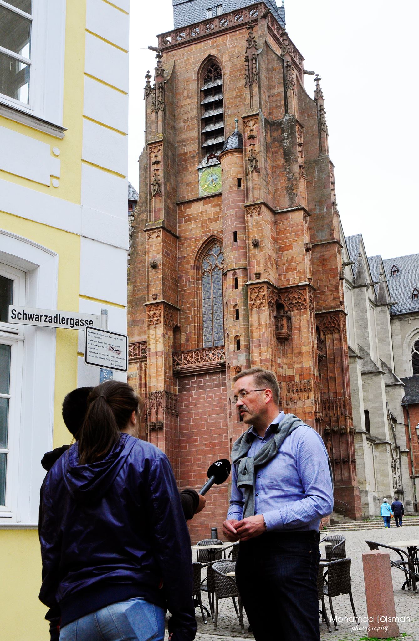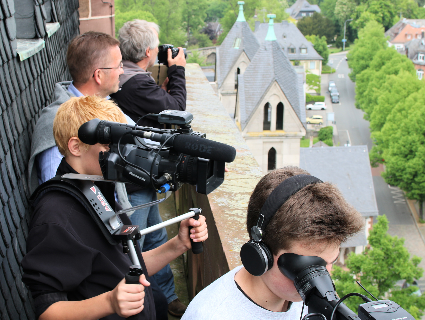 Dr. Matthias Büger (FDP) und Manfred Wagner (SPD) nahmen sich fast zwei Stunden Zeit, die zahlreichen Fragen der jungen ModeratorInnen, Omer und Lea, zu beantworten. Drei Kameraleute haben den kritischen Stadtrundgang festgehalten. Nun muss alles so zusammengeschnitten werden, um es bis zum Ende der Woche präsentieren zu können.