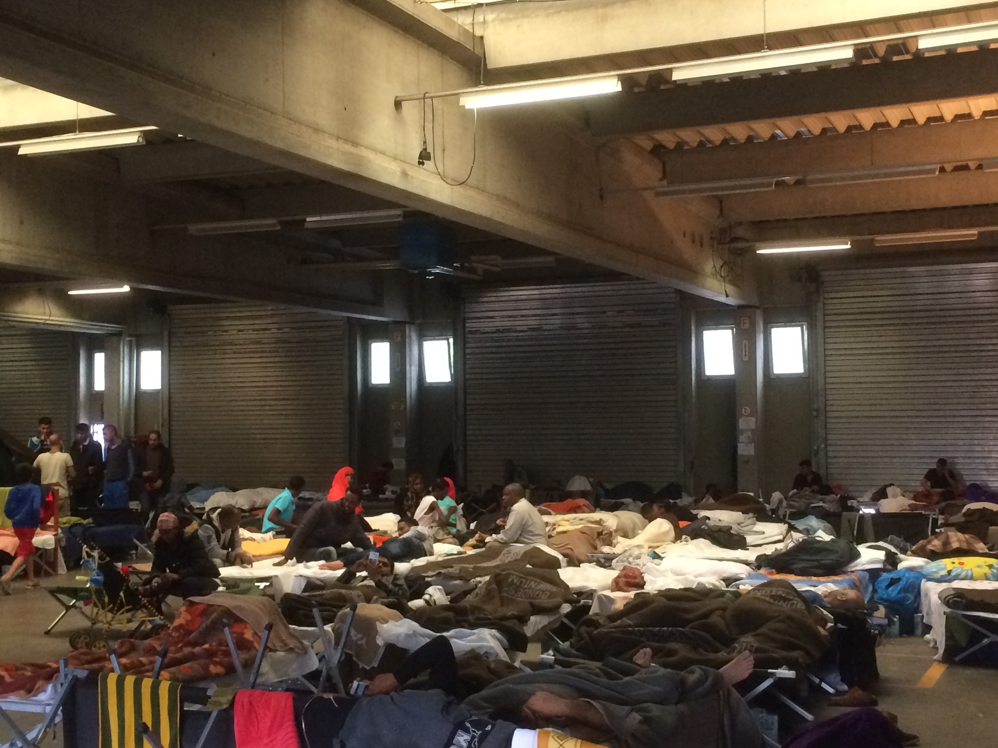 Zwei Camps nebeneinander ist und war keine gute Idee. Man verliert als Mitarbeiter*in, Bewohner*in und Helfer*in den Überblick. Die Nachbar*innen (Firmen, Privatpersonen, Supermärkte, etc.) sind überlastet. Die Straße ist als Durchgangsstraße nicht mehr nutzbar. Es herrscht eine eigenartige aggressive Stimmung vor allem im Lager II. 500 Menschen in einer Halle: Frauen, Jugendliche, alte Menschen, Kleinkinder! Das geht vielleicht eine Woche „gut“.