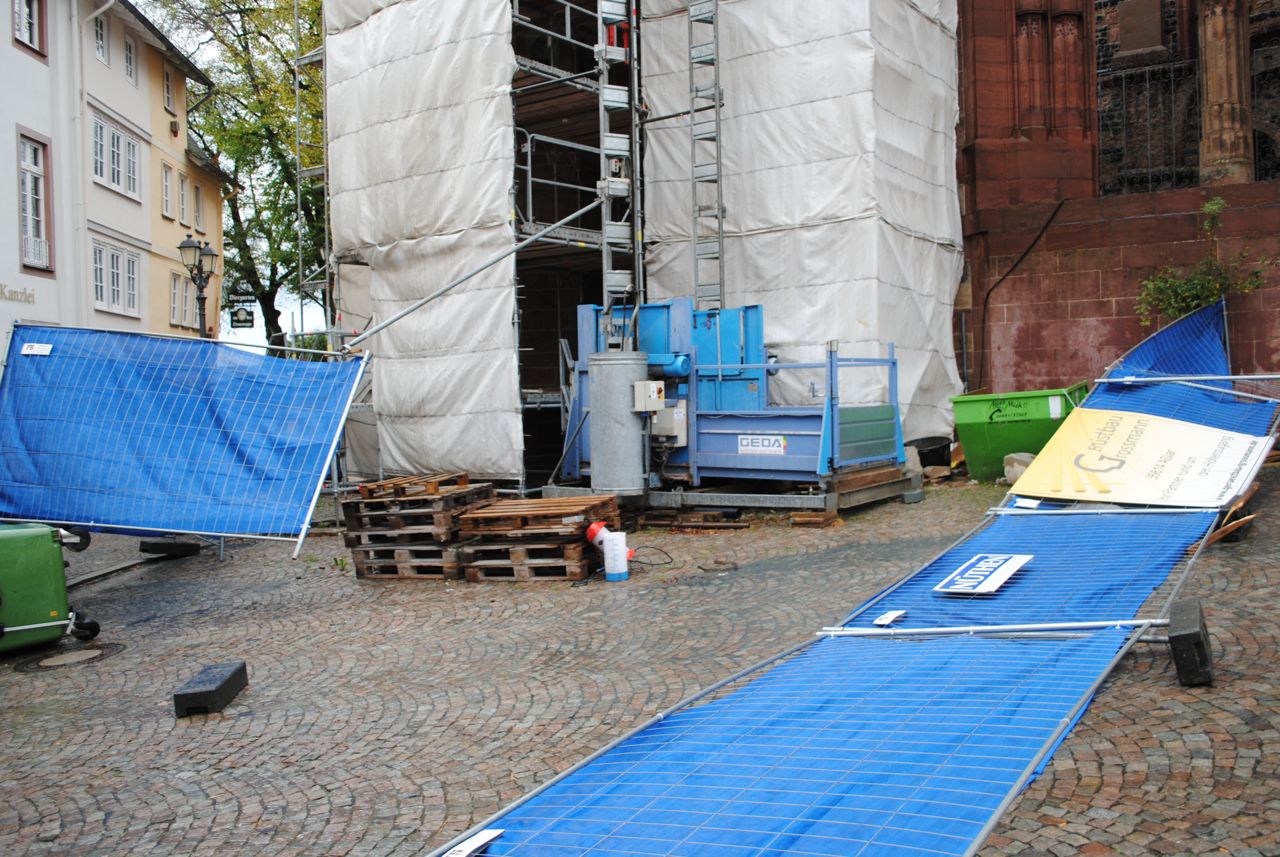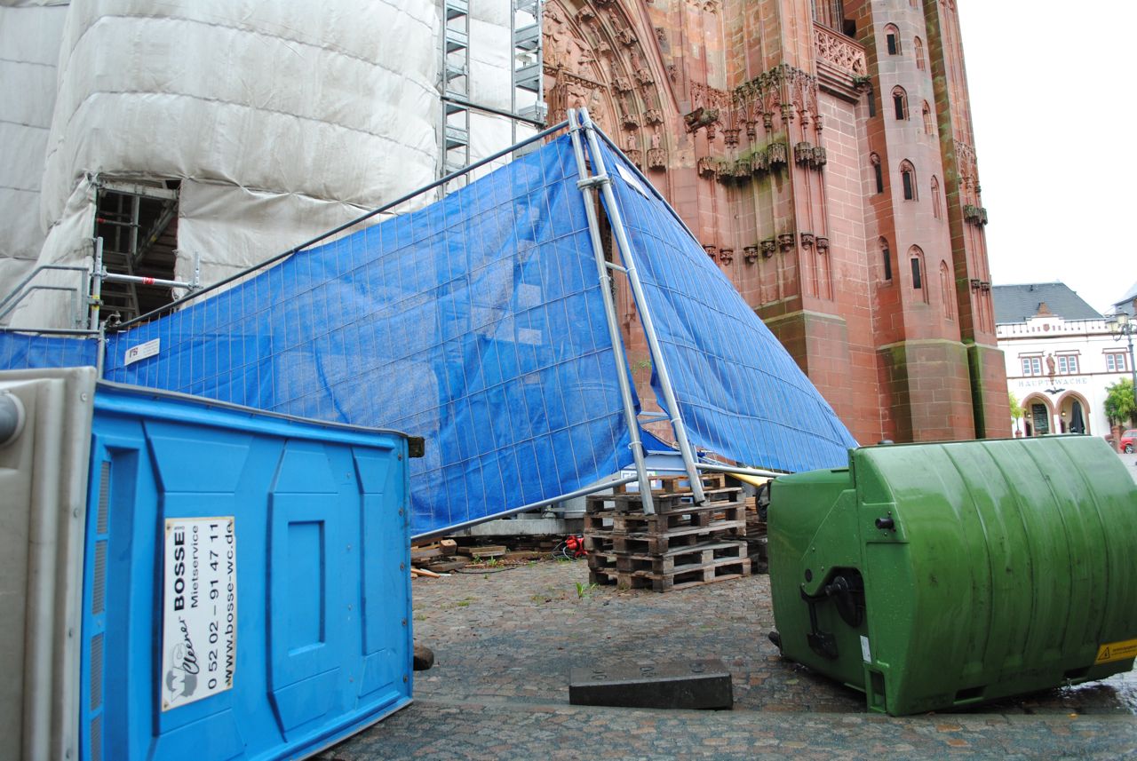 Archiv Sturm zieht über Wetzlar 27. Oktober 2013 Joachim Schaefer Schreibe einen Kommentar Der Dom steht noch, nur der Bauzaun an der Westseite löste sich. Bilder: Gerüst blieb stehen Bauzaun Bauzaun und Toilettenhäuschen Feuerwehr Wetzlar hatte mindestens 7 Einsätze Domplatz Wirt am Dom